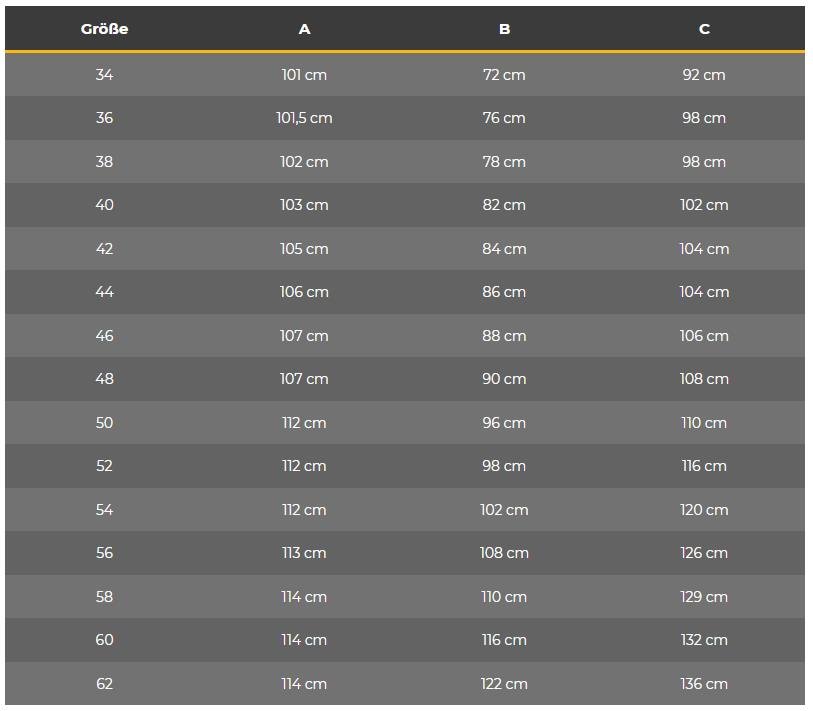 | Konfektionsgröße | 46, 48, 50, 52, 54, 56, 58, 60 |