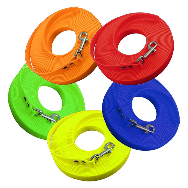 Zum Training eignen sich ganz besonders die Hundeleinen mit oder ohne Handschlaufe in Längen von einem Meter bis drei Meter oder Such- und Schleppleinen mit bis zu 20 Metern Länge.
