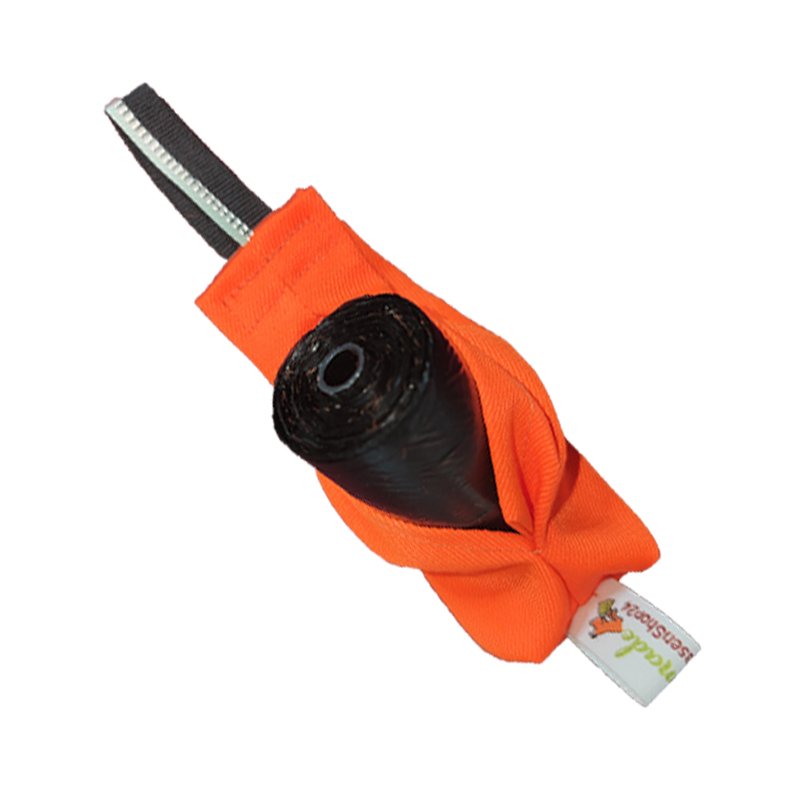 In die Öffnung ist eine kleine Lasche eingearbeitet, sodass die Kotbeutelrolle von aussen nicht sichtbar ist.