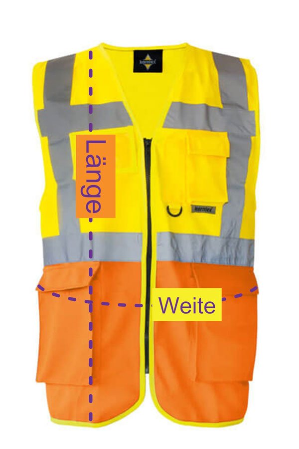 Bitte bedenken Sie bei der Größenwahl, dass Sie ggf. auch mal eine Jacke unter der Warnweste tragen wollen.